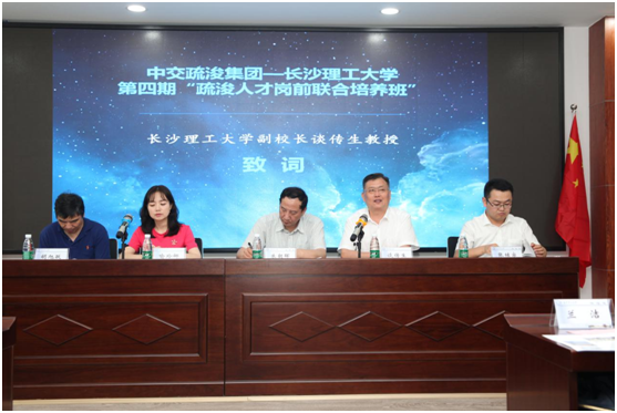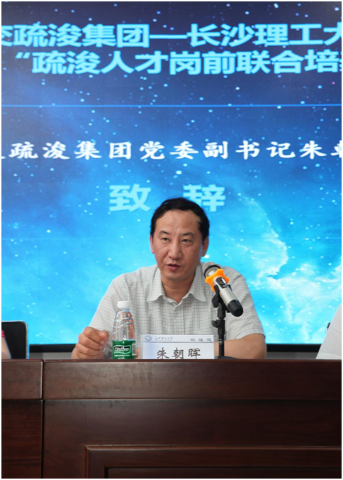 朱朝晖代表中交疏浚集团致辞。对第四期疏浚班给予高度评价和充分肯定,同时还提出了几点建议,建议学员要持续学习,学以致用,在工作实践中不断进步;要抓住发展转型的机遇,坚守“博学、力行、守正、拓新”的长理校训,踏实进取,沉下心来不断提高业务能力;要志存高远,不忘师恩,努力成为新时代弄潮儿的同时也不要忘记母校的培养,主动成为联系企业与学校的纽带。最后鼓励学员们以“交融天下、建者无疆”的精神共同描绘海洋强国的美丽蓝图。