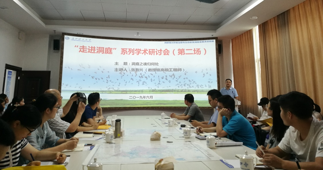 6月27日下午,洞庭湖水环境治理与生态修护湖南省重点实验室在新能源大楼一栋112会议室成功举办了“走进洞庭”系列学术研讨会(第二场)。会议邀请到了湖南省水利水电勘测设计研究总院高级工程师张有兴,开展了题为“洞庭之魂归何处”的讲座。此次会议由水利工程学院副院长陈杰主持,水利工程学院60余师生参加了本次研讨会。