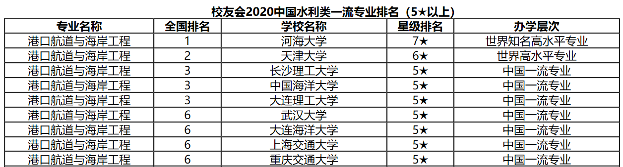 近日,由全国第三方大学评价咨询机构艾瑞深校友会网(Cuaa.Net)撰写的《2020中国大学评价研究报告——高考志愿填报指南》一书由科学出版社出版发行。在最新发布校友会2020中国水利类一流专业排名榜单上,开云kaiyun体育水利工程学院港口航道与海岸工程专业跻身全国第三位,同中国海洋大学、大连理工大学并列。这是该专业自2018、2019年连续两年全国排名第四后,在办学水平、人才培养能力和质量上的又一次提升。