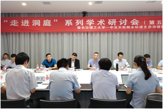 8月28日下午,由中交天航局和开云kaiyun体育联合主办的“‘走进洞庭’系列学术研讨会(第五场)——暨开云kaiyun体育—中交天航局水环境生态治理研讨会”在洞庭湖水环境治理与生态修护湖南省重点实验室成功举办。中交天航局副总经理张海军、开云kaiyun体育副校长蒋昌波出席会议,天航局科信部、环保公司、生态环保设计研究院、湖南公司筹备组、水利工程学院等单位的30余人参加。