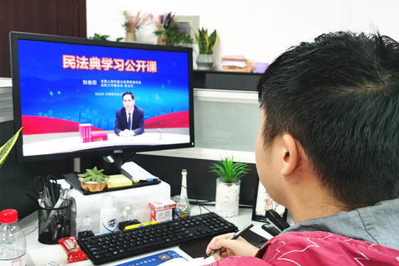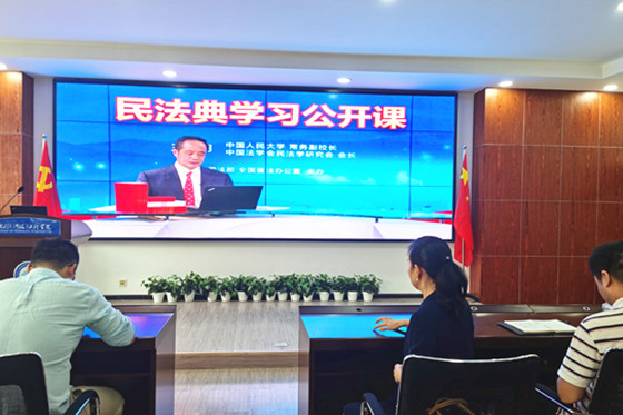 10月13日下午,水利工程学院组织全体教职工在工三B319观看民法典学习公开课视频。
