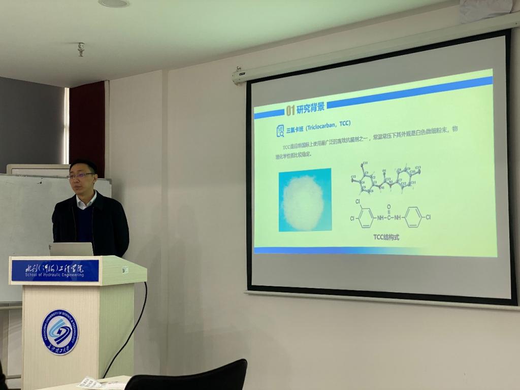 王冬波向与会师生介绍了我国作为三氯卡班生产和消费大国,近年来在不同河流中均检测到三氯卡班存在;在污水处理厂上游河流中三氯卡班检测率大约为50%,而污水处理厂下游河流中却能100%检测。硝化作用是污水生物脱氮的起始步骤,三氯卡班对污泥硝化菌的影响关系及机制仍不明确。由此提出了创新的研究思路,考察了TCC在污泥硝化系统中的去除效率,通过质量平衡证实了TCC被污泥去除是由吸附作用主导行为;进而采用长期连续实验探究了不同浓度的TCC短期和长期暴露对污泥硝化系统性能及硝化微生物的影响规律及机制。该研究成果发表在国际权威期刊《Water Research(2020, 178, 11585)》(IF 2019 = 9.13)上。此次讲座为开云官网师生开阔了学术视野,对于提升大家学术水平进而激发创新思想和勇于探索未知欲起到了积极效果;同时加强了省内高校之间的学术交流,有利于促进形成更加良好的学术氛围。