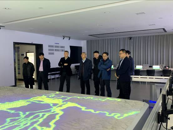 蒋昌波向沈新平一行介绍了洞庭湖实验室的发展历程、组织构架、主要研究成果以及发展目标,随后实验室老师邓斌重点介绍了智慧洞庭综合信息化平台,对平台的构成模块、数据来源、功能应用等方面进行了展示及讲解。