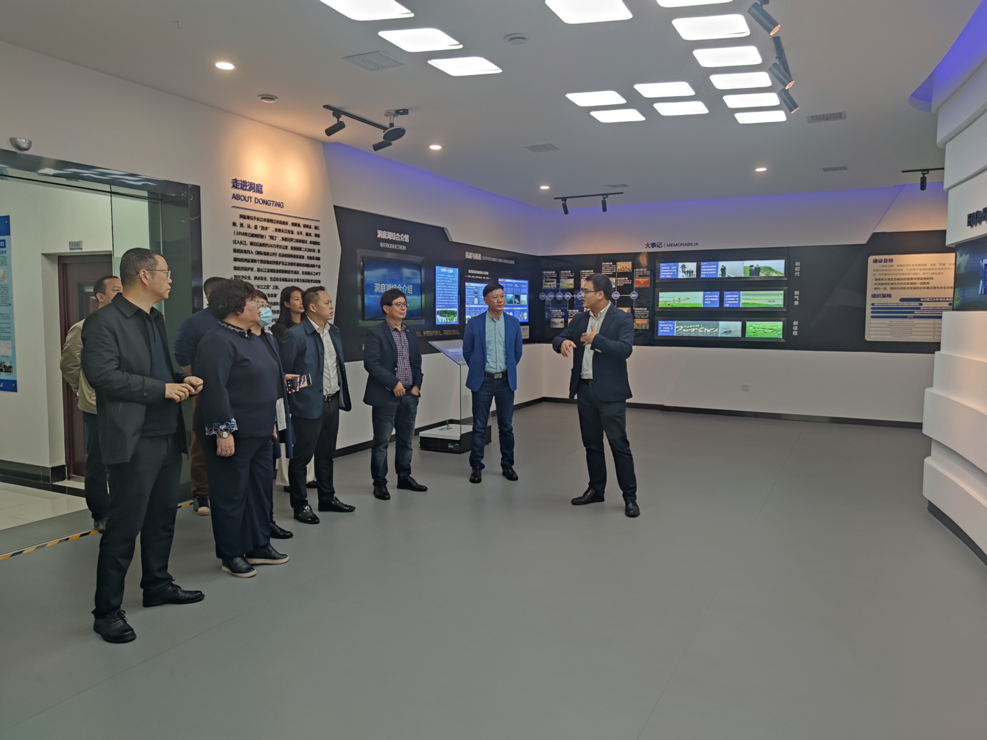 在洞庭湖实验室,杨李林一行详细了解了洞庭湖基本概况、目前所面临的机遇与挑战、实验室发展目标,以及洞庭湖实验室的建设历程、主要研究方向等,随后对智慧洞庭综合信息化平台的主要功能模块和应用情况进行了重点了解。