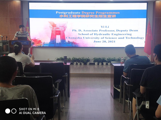李毅从学院的办学历史、学科方向的优势及特点、导师团队、科研创新资助体系、奖助学金及就业前景等分别作了详细的宣讲,鼓励同学们积极报考水利工程学院。