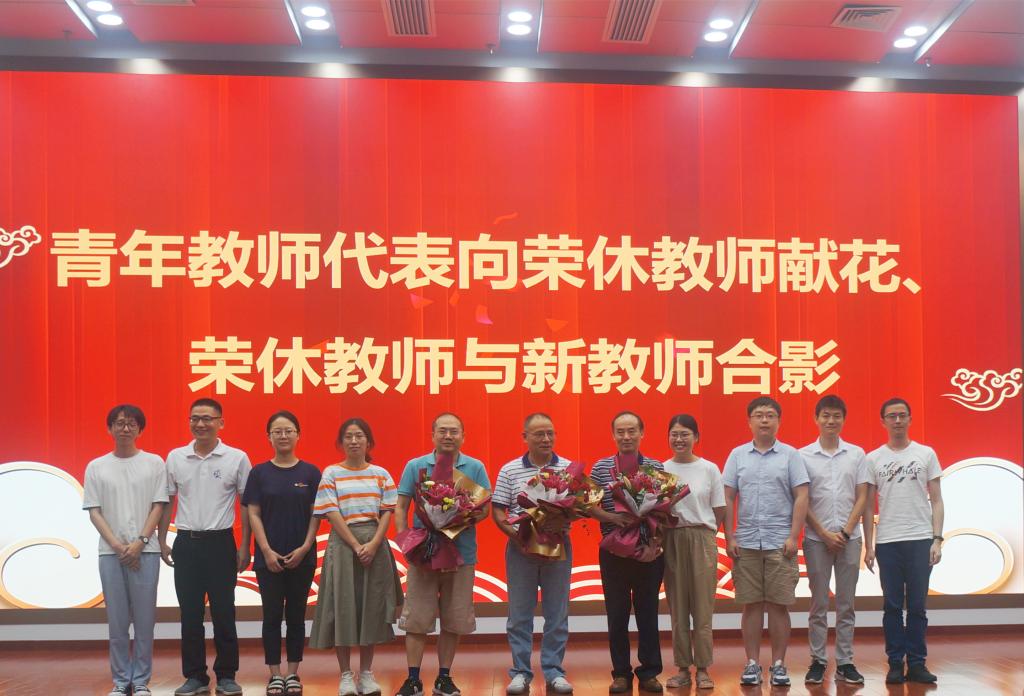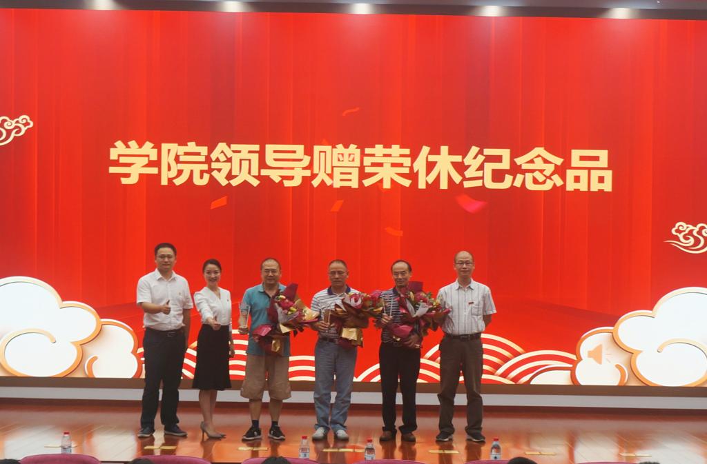 仪式上,新入职青年教师代表为荣休教师敬献了鲜花,院领导向赵利平、沈小雄、李诚三位荣休教师赠送了纪念品并合影留念。