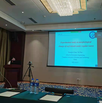 在为期五天的研讨会中,参会学者围绕小尺度物理-生物过程、大尺度的河口海岸地貌演变、工程措施等研究进展前沿,展开了热烈的学术讨论,其中我院硕士研究生陈仙金做了题为“Experimental study on morphological change of reef islands under regular waves”口头学术报告。