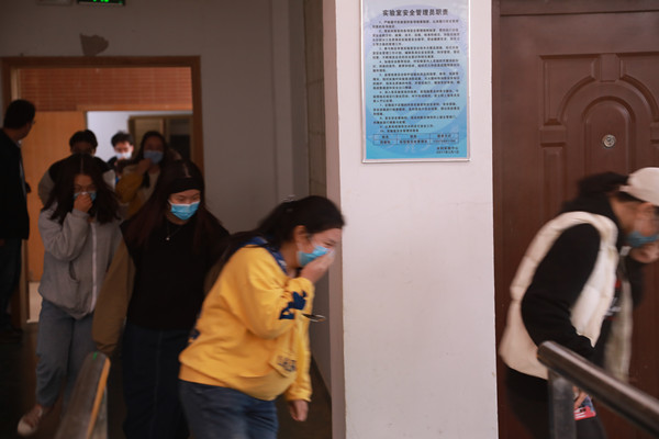 上午11点30分,不明原因火灾模拟发生在水利实验中心研究生工作室。浓烟迅速向楼道蔓延,火警警报声在实验中心响起,同学们发现后立即向研究生工作室负责人和学院安全管理小组报告。学院领导得知信息后,立即启动消防安全紧急预案,一边发出紧急救援疏散命令,一边拨打119报警,同时向上级部门报告情况。指挥组、灭火组、疏散组按照讲座中所学和日常工作安排,有条不紊地切断非消防电源、启动消防设施、疏散楼内师生。在疏散演练中,每个楼道口的安全护导员起到了重要的作用,他们不仅要引导学生选择正确的逃生路线和方法,还要逐一排查所负责区域内的学生是否安全撤离。