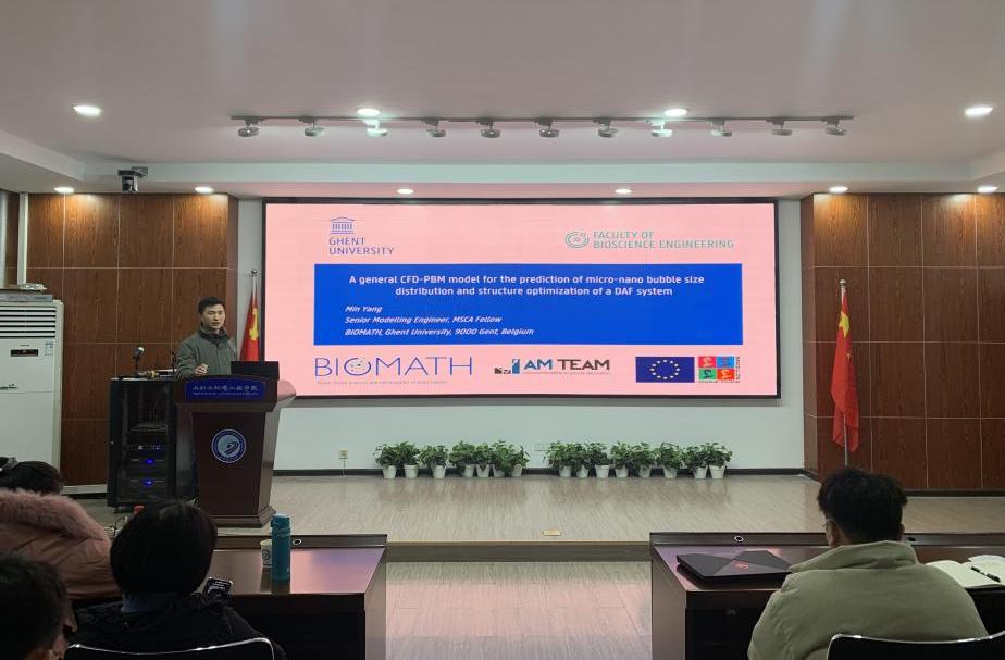 2022年1月14日,在云塘校区工三B319室,比利时根特大学学者、欧盟玛丽居里学者杨敏博士受邀做了题为《A general CFD-PBM model for the prediction of micro-nano bubble size distribution and structure optimization of a DAF system》(《用CFD-PBM模型用于溶气气浮池微纳气泡尺寸分布预测与结构优化》)的学术报告。本次报告由陈宏教授主持,蒋朝晖、谢敏、赵文玉、史丽秀、于瀚博、刘志华、彭向训等老师和十余名研究生参与本次学术活动。