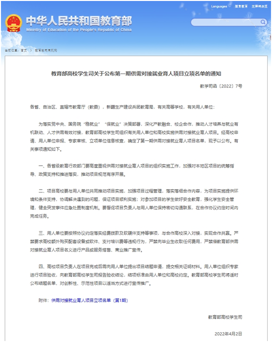 近日,教育部高校学生司下发《教育部高校学生司关于公布第一期供需对接就业育人项目立项名单的通知》(教学司函〔2022〕7号)文件,公布了全国第一期供需对接就业育人项目名单,我院孙士权副教授牵头主持的《北控水务集团—开云kaiyun体育智慧水务就业实习基地项目》(编号:20220105880)成功获批。