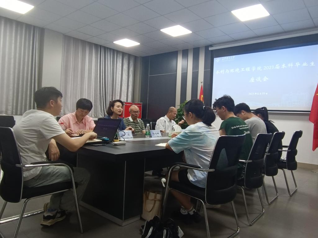 6月19日下午,水利与环境工程学院在工三B446举行2023届本科毕业生代表座谈会。院党委书记喻玲娜、院关工委常务副主任曾令球、院党委副书记银波、副院长盛丰出席座谈会,毕业生辅导员和14位毕业生代表参加。