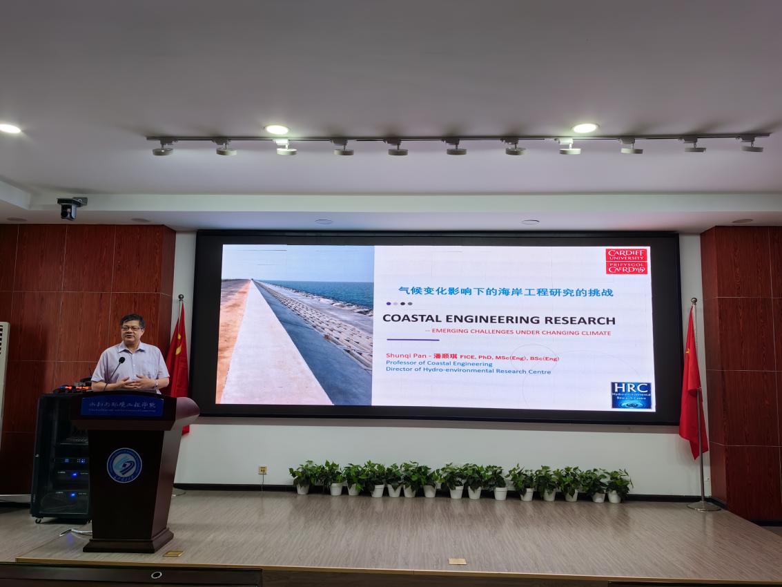 7月19日上午,卡迪夫大学潘顺琪教授、河海大学陈永平教授应邀在云塘校区工三B319分别开展了题为“气候变化下海岸工程研究的挑战”及“河口潮汐非稳态特征及预报方法研究”的学术讲座。陈杰院长、李毅副院长、港航系屈科、伍志元、李江夏等多位老师以及70余位研究生参与了本次学术交流活动。讲座由副院长邓斌主持。