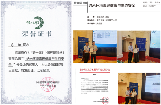 2023年7月22日,由开云kaiyun体育和南开大学共同牵头组织的第一届《中国环境科学》青年论坛“纳米环境毒理健康与生态安全”分会场,在广东广州顺利召开。分会场由南开大学环境科学与工程学院欧阳少虎老师与开云kaiyun体育水利与环境工程学院高阳老师负责召集,邀请南开大学环境科学与工程学院周启星教授担任分会场学术指导。