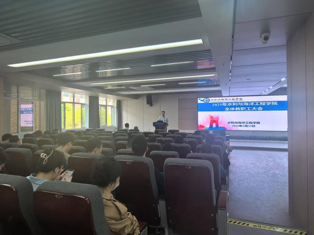 3月25日下午,水利学院在云塘校区新能源大楼1栋二楼会议室召开全体教职工大会,学院党政班子成员及全体教职工参加,会议由院长陈杰主持。