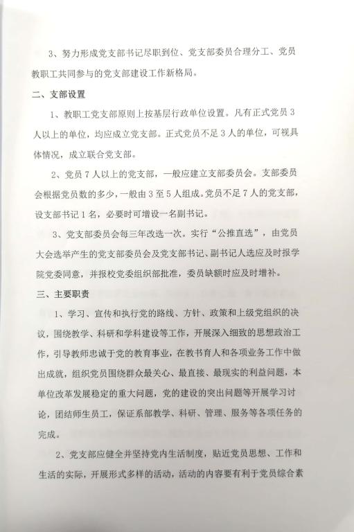 水利工程学院教工党支部工作制度(长理工大水利党【2019】05号)