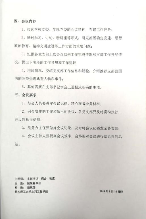 水利工程学院党支部书记工作例会制度(长理工大水利党【2019】06号)