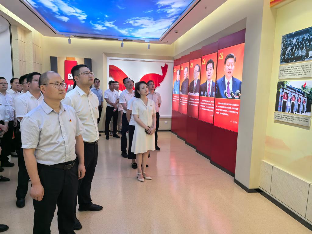 参观结束后,全体人员在基地的宣誓厅重温了入党誓词。面对鲜红的党旗,大家高举右拳,庄严宣誓,以铿锵有力的誓言表达了对党忠诚、为共产主义奋斗终生的坚定决心。