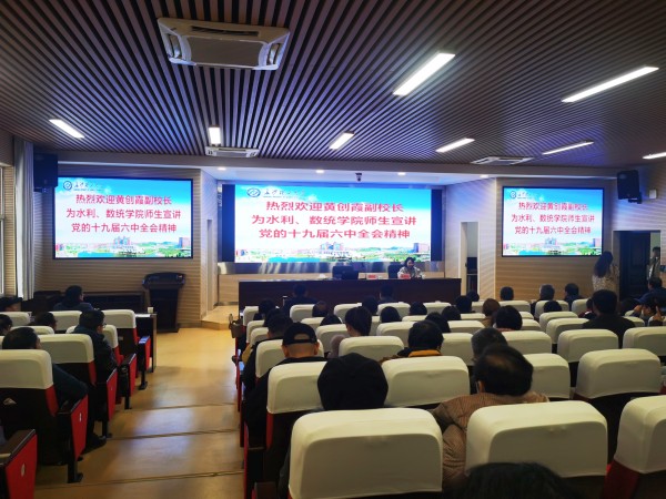 12月28日下午,开云kaiyun体育副校长黄创霞在理科楼A200为水利与环境工程学院、数学与统计学院教师宣讲党的十九届六中全会精神和湖南省第十二次党代会精神。水利学院党委书记喻玲娜主持会议。