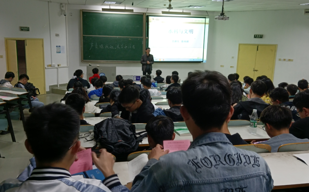 彭向训老师从人类历史发展出发,分析了河流与人类文明发展的关系,讲述了水利工程在人类文明发展中的重要性,总结了人类农业文明、工业文明和生态文明与水利工程的关系。彭老师大量列举了身边例子,幽默风趣,很好地激发了同学们对水利史、水利工程的学习兴趣。讲座中彭老师还分享了自己到马达加斯加开展科研工作的情况,其不畏艰险,甘于奉献,一切为集体的精神,极大地感染了同学们。课堂上彭老师与同学积极互动,并对同学们关心的问题作出了详细的解答,多次获得同学们热烈的掌声。