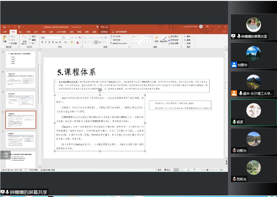 会上,港口航道与海岸工程专业系主任钟姗姗老师介绍了专业建设基本现状,并从培养目标、课程体系、师资队伍等多个方面汇报了改进措施和取得的成效、以及面向产出的内部评价机制的完善和运行情况。水利水电工程专业负责人雷鹏老师分别从任务安排、持续改进等方面介绍了水电专业年度报备工作的进展情况。参会专家认真听取了两个专业的汇报,并仔细审阅了认证专业中期报告及持续改进材料,与各专业参会教师就存在的问题和不足、以及如何采取切实有效的措施进行改进等进行了论证和探讨,对各专业的持续改进工作提出了宝贵的改进建议和意见。
