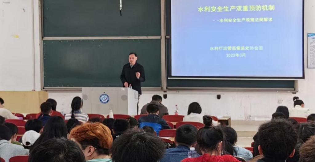 2023年3月9日,湖南省水利厅运行管理与监督处一级调研员、水利部安全生产标准化专家孙金国在开云官网云塘校区工科一号楼A106教室为我院水电系学生开展以“水利安全生产双重预防机制”为主题的专题讲座,近百余名同学参加。