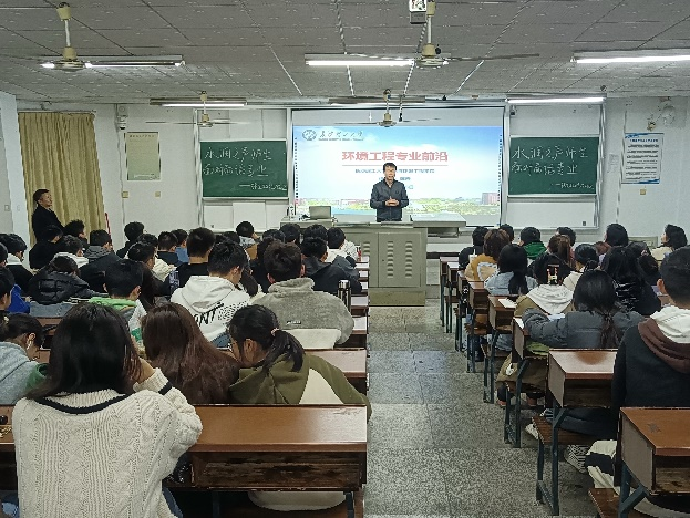 2023年3月25日晚,水利与环境工程学院陈宏教授在金12-315教室为开云官网学生开展以“生态环境技术前沿”为主题的通识教育讲座,以及水润之声面对面话专业系列讲座。本次讲座由刘志华老师主持,环境工程教研室全体教师出席了活动,一百多名学生聆听了讲座,并与陈宏教授进行了互动交流。