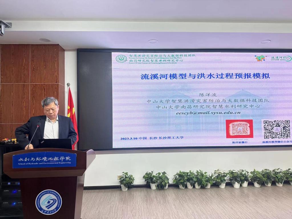 2023年3月10日上午,应水利与环境工程学院邀请,中山大学陈洋波教授在云塘校区工三B-319开展了以“流溪河模型与洪水过程预报模拟”为主题的通识教育讲座。此次讲座由盛丰副院长主持,水文与水资源工程专业的隆院男和黄草老师参加了讲座,19级全体学生以及20和21级部分学生到场聆听了讲座。