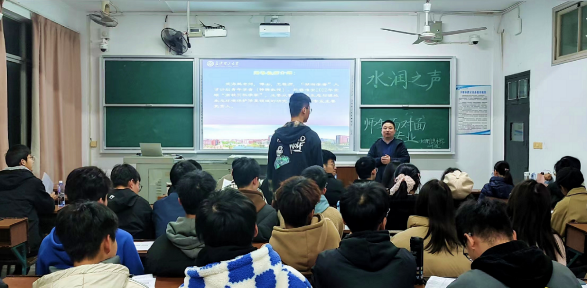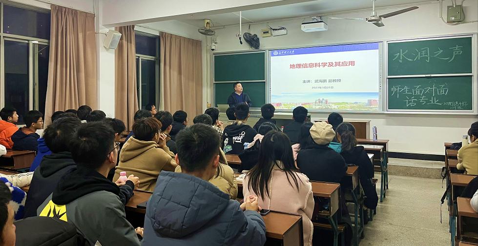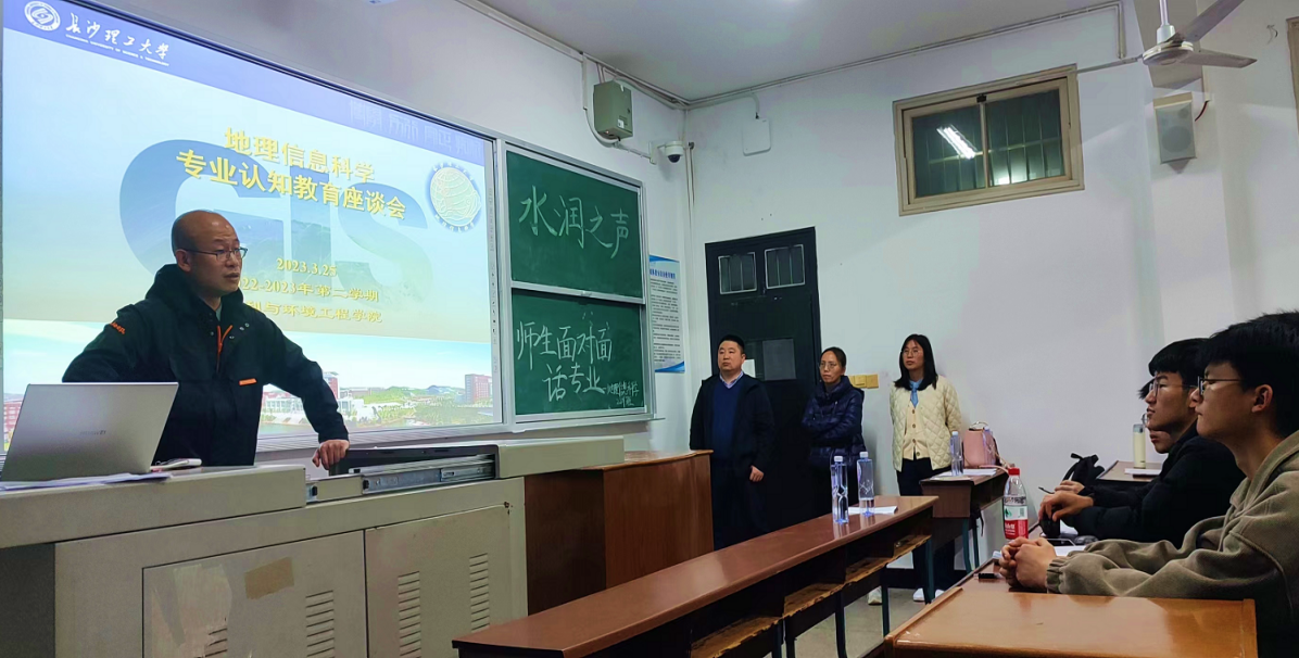 3月25日晚,水利与环境工程学院武海鹏副教授在金盆岭校区12-310教室为地理信息科学(GIS)专业2022级本科生开展以“地理信息科学及其应用”为主题的学术讲座以及专业认知教育讲座。亲临现场交流和指导的领导和老师有:盛丰副院长,武海鹏副教授,以及许珊、陈玮婧和黄志勇三位专任教师。