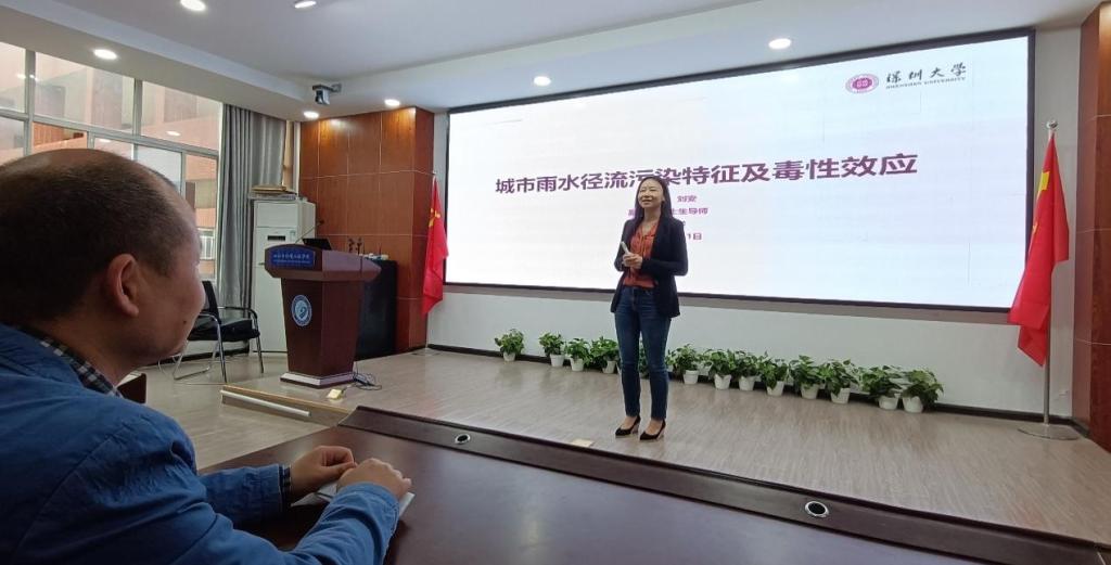 刘安老师向在座师生介绍了雨水这一重要的资源,生动地介绍了澳洲与大湾区城市缺水现状及其使用的节水措施,给所有师生普及了我国关于海绵城市建设与雨洪管控相关的议题。随后,刘安老师具体汇报了她在城市雨水径流污染方面的工作,具体包括:1)城市雨水中污染物迁移转化规律;2)城市雨水中各类污染物的综合毒性风险评价。讲座结束后,在座的师生均表示获益匪浅,并对刘老师积极提问,交流所得。