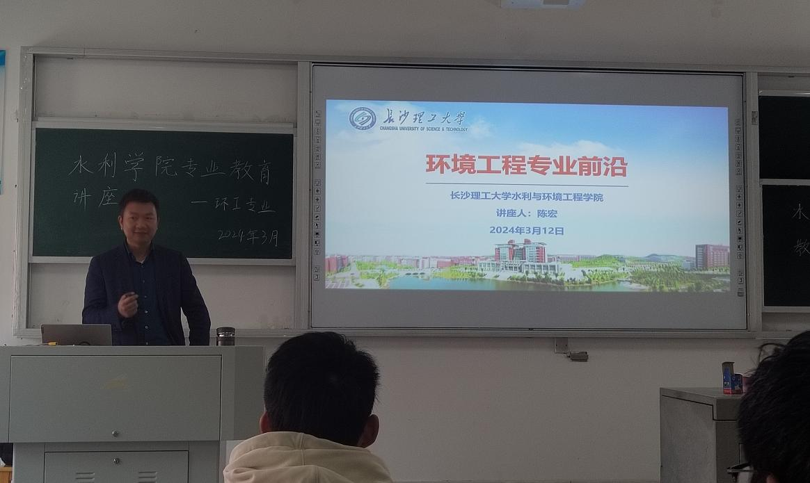 为了进一步增强同学们对环境工程专业的认知度和归属感,水利学院环境工程专业于2024年3月12日下午在云综教 B 203教室开展专业教育讲座。座谈会上,专业带头人陈宏教授首先分别从环境工程的使命与发展前景两个方面向同学们进行介绍: