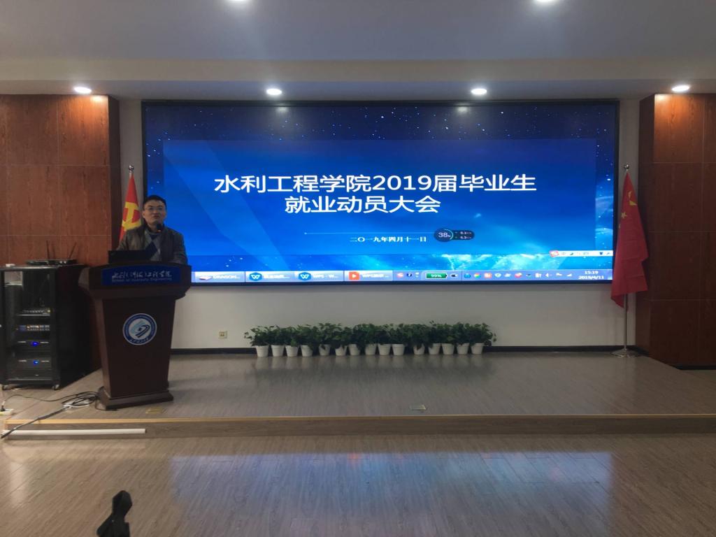 为让2019届毕业生高质量充分就业。4月11日下午,水利工程学院在工科三号楼B319举行2019届毕业生就业动员大会,水利工程学院院长胡旭跃、副院长蒋中明、副书记王学成、2019届未就业的全体毕业生参加本次会议。会议由就业负责老师贺志琼主持。