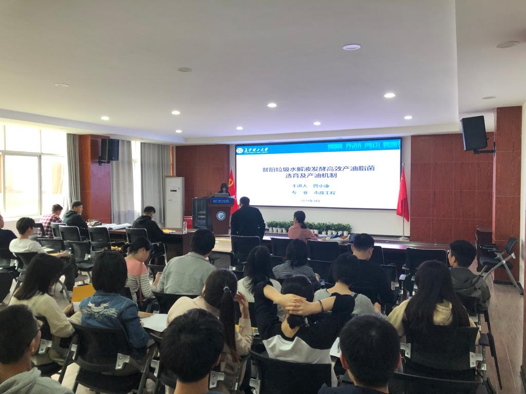 首先,曾小康同学向大家阐明了“餐厨垃圾水解液发酵高效产油酯菌选育及产油机制”项目的基本概况,介绍了课题的研究背景意义及研究现状,重点分析了微生物油脂合成的影响因素以及餐厨垃圾的处理方法。 龚尚鹏同学从研究背景与意义、研究现状、可行性分析、研究内容、研究方案、拟解决的关键问题、已开展工作、下一步研究工作九个方面向大家汇报了“基于数据挖掘的植物消浪机制研究”项目的基本概况,重点分析了基于符号回归方法的植物消浪影响因素分析。 王孟飞同学通过向大家介绍我国内河航运的现状以及未来趋势,引出通航隧道建设的意义以及现状。着重阐述了船行波的定义、传播规律、数值实现等方面的内容。信瑞亮同学首先向大家汇报了“防渗加固工程盲区灌浆材料研究”项目的基本概况,介绍了课题的研究背景及研究现状,并把自己前期的研究成果向大家进行了展示。这四位同学的汇报深入浅出,能够让不同专业的同学心领神会,极大的激发了大家的学习兴趣,同学们踊跃提出自己的疑问与其交流,收获颇多。