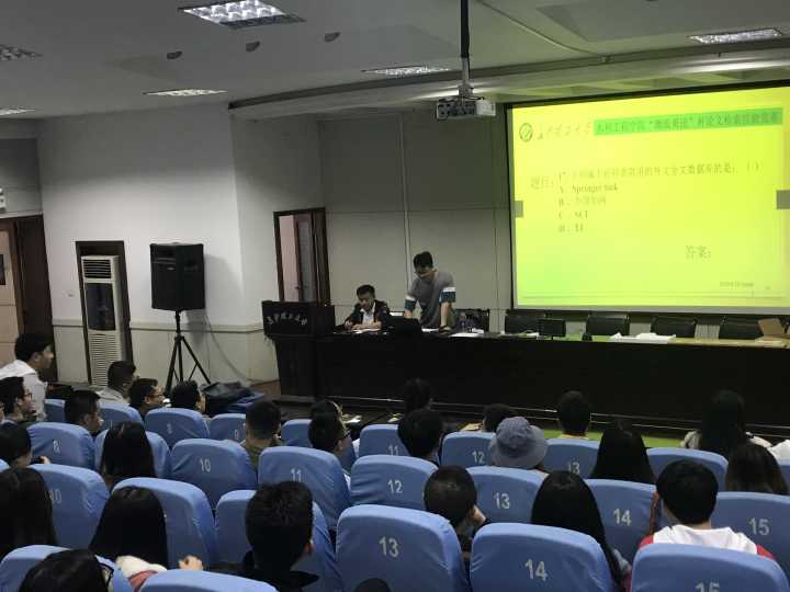 此次知识竞赛活动共有51人报名参加此次活动,每组3人,共有17个小组,比赛分为两个环节:初赛和决赛,初赛环节分为线上提交和线下顺序答题两部分。线上提交通过提交时间、被引和下载量等因素由高到低积分,线下顺序答题由各组轮流答题积分。决赛环节分为两部分,第一部分为分数排名靠前的6组晋级排名争夺战,此环节由主持人读题,6组成员进行抢答,第二部分为文献参考格式改错,整个竞赛过程竞争非常激烈。