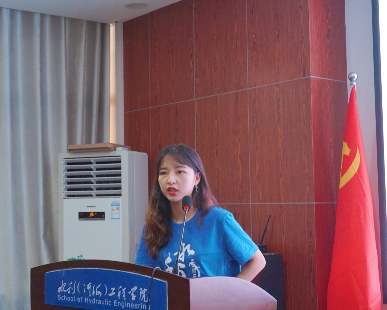 院团委书记杜丘宣读了《关于开展水利工程学院2019年暑期“三下乡”社会实践活动的通知》,就学院集中实践与分散实践相关要求与安排进行了详细的介绍。2018年全国“三下乡”社会实践优秀团队成员聂华林作为实践代表发言。他结合3年的社会实践经历分享了三下乡中的重点难点并代表全体三下乡成员表示在实践过程中将脚踏实地、严守纪律,用干劲、闯劲、钻劲投身社会实践中。在为14支校级立项的实践团队授旗后,王学成肯定了同学参与志愿服务的热情,寄语全体水利学子传承大禹人的优良传统,在专业老师的指导下志存高远,坚定信念,运用专业的科学文化知识服务当地群众,用实际行动担负保护江河之重任。