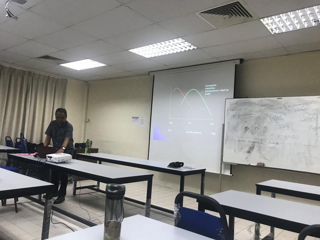 上午,Dr.Piong Mohd为同学们介绍了植物修复和人工湿地等专业知识。他的课程讲解十分详细,并在课堂上为同学们答疑。此外,Dr.Piong Mohd还围绕三次野外实习与小组作业进行了分组与解说,帮助同学们更好的完成课程报告。