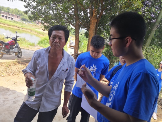 上午10:00,调研团抵达双峰县青树坪镇镇政府,在青树坪镇水利站站长匡健民带领下,下村拜访村民并进行问卷调查。实践团拜访的第一站是华力村,村主任刘甲能介绍华力村已有3组约70户居民用上了于2014年建成的村级工程的自来水,村级工程中的水质较好,给村民生活带来了极大的方便,在省水利厅前年曾派人到访此地采集水样带回检测。通过对华力、金鑫、界峰、栗山新村四村的调查,实践团发现青树坪镇下属各村落农村饮用水来源主要是村级工程供水、取用山泉水、打井取水三种,四村受访村民均表示对自家饮水水质放心,村级工程供水用户反映说除了偶有供水不足的情况外,对供水水质都十分满意。