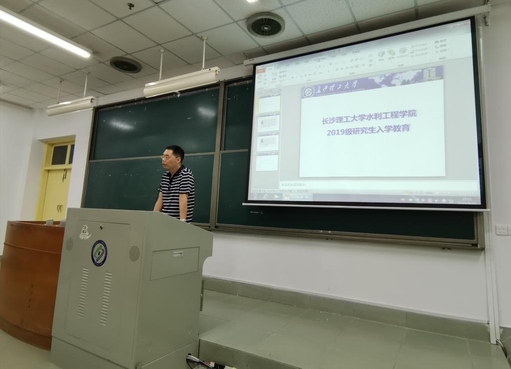 9月10日晚7点,水利工程学院研究生新生入学教育之“院长第一课”在金盆岭校区1教A101室举行,水利工程学院院长胡旭跃、副院长蒋中明、学工办辅导邓奕琳及2019级全体研究生参加了此次会议,会议由学工办邓奕琳老师主持。
