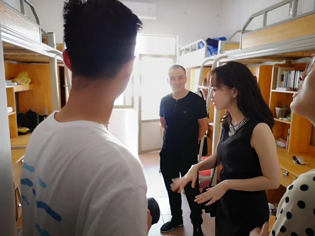 在寝室中,喻玲娜向新生及家长的到来表示欢迎并详细了解学生来校适应、生活以及环境等情况并鼓励大家大学期间要努力学习、志存高远、不负韶华。同学们表示目前正在积极地适应学校的生活环境,适应大学生活,转变身份。2019级家长对于学校学院的迎新工作以及基础设施等表示肯定并表示将与学校一起做好孩子的成长教育。每到一间寝室,喻玲娜再三叮嘱自身财产与人身安全,养成随手关门、锁门、关电等良好习惯,从细节做起保障寝室安全。