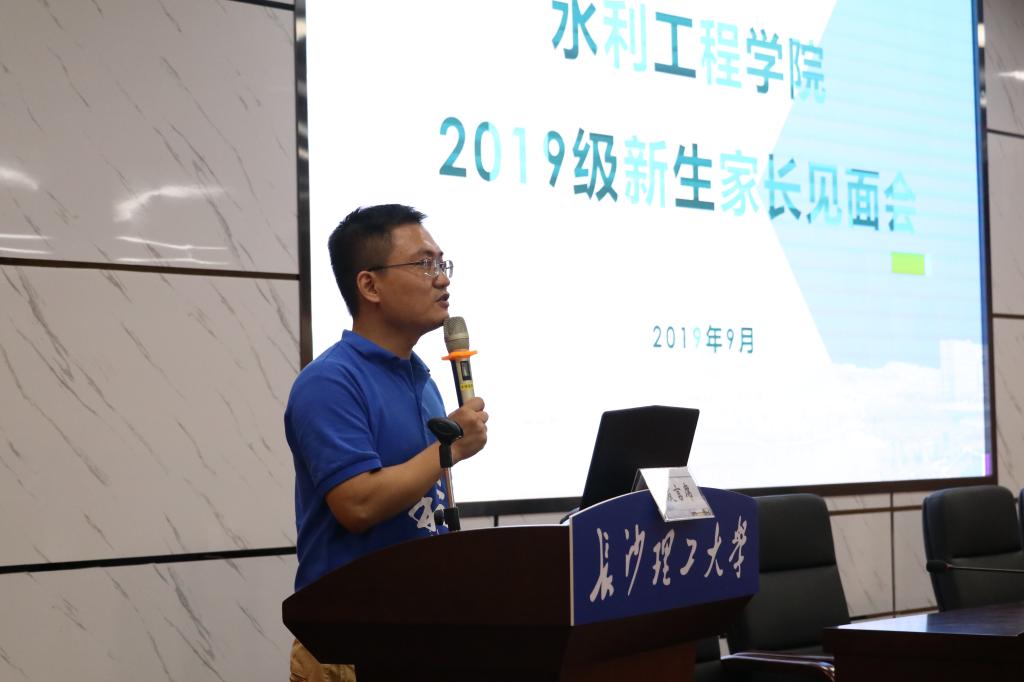 2019年9月7日下午,水利工程学院在金盆岭4教报告厅举行2019级本科生新生家长见面会。院党委书记喻玲娜、院长胡旭跃等学院领导老师以及150余新生家长参加本次会议。会议由院党委副书记王学成主持。
