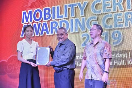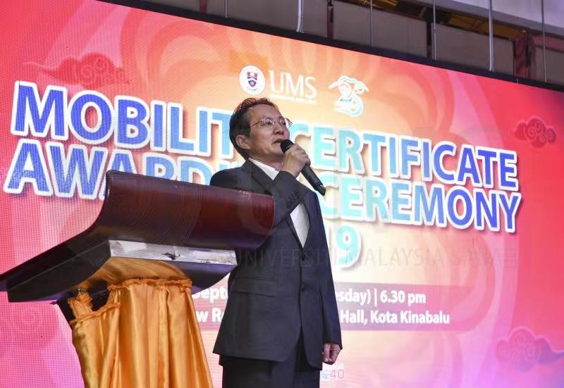 访问结束后,当天晚上,沙巴大学在Port View Restaurant举行了欢迎晚会暨交流生毕业证书颁奖典礼——MOBILITY CERTIFICATE AWARDING CEREMONY。湖南省教育厅副厅长王瑰曙、马来西亚沙巴大学副校长Professor Rasid、开云kaiyun体育副校长蒋昌波、开云kaiyun体育国际交流处处长吴迪龙、马来西亚沙巴大学中国办公室主任刘蓉和教师代表及开云kaiyun体育、湖南中医药大学全体交流生等出席了本次活动。