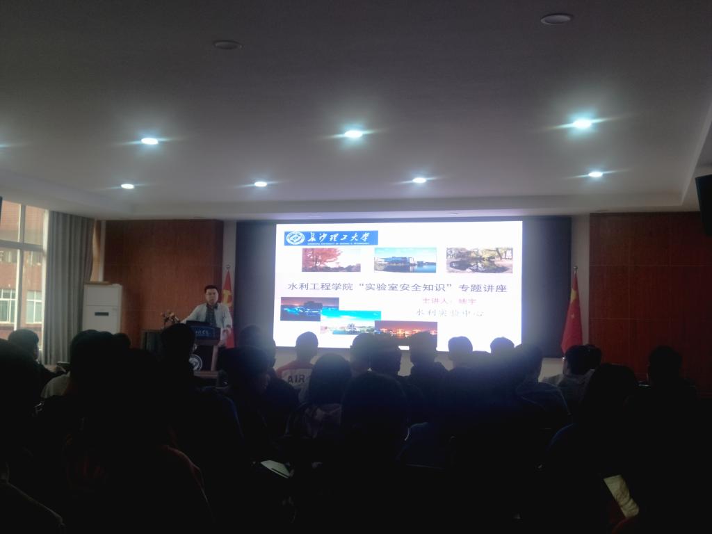 10月17日水利工程学院在云塘校区工三B319教室举办了研究生实验室安全知识讲座,此次讲座由水利实验中心主任姚宇副教授主讲。