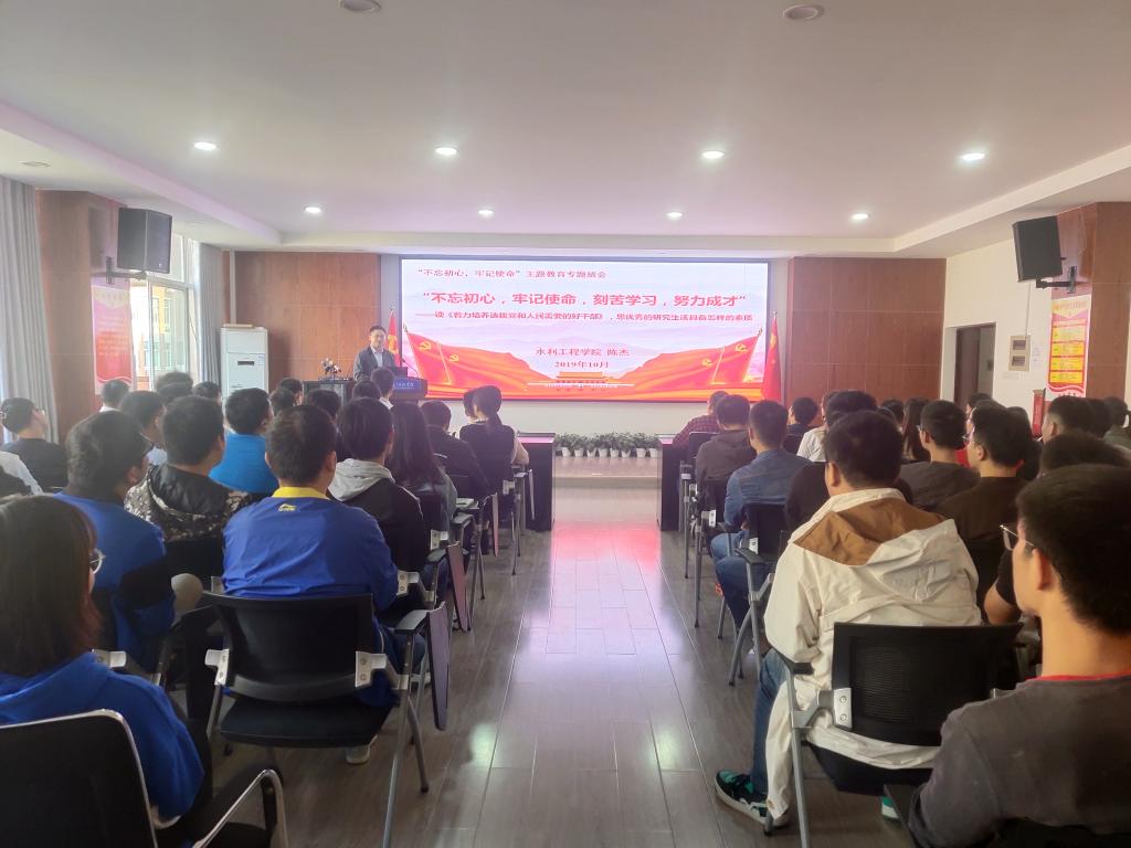 2019年10月,水利学院开展了“不忘初心、牢记使命”研究生导师导学的主题教育。