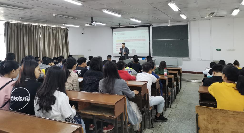 胡旭跃导师对19级全体研究生开展了“不忘初心、牢记使命”的主题班会。他提到这次主题班会旨在教育引导各位同学学习习近平新时代中国特色社会主义思想,胡院长提出了自己的个人理解,他认为中国特色社会主义思想是党和国家必须长期坚持的指导思想,新时代所面临的形式复杂、环境恶劣、任务艰巨,所以需要有新的理论指导。