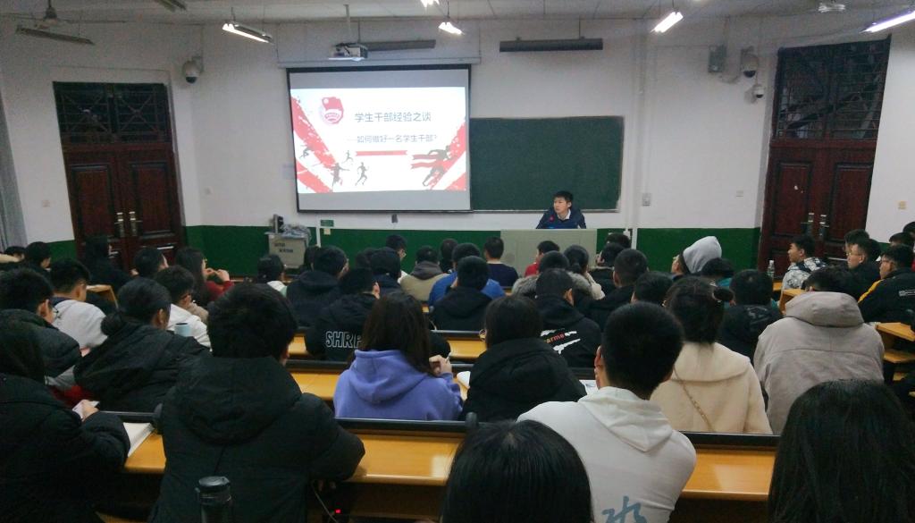 为加强我院学生干部队伍的建设,提高学生干部的思想认识和工作能力,12月16日晚7点,水利工程学院在金盆岭校区14号教学楼1002教室举办 “学生干部经验之谈---如何做好一名学生干部”主题讲座,讲座由水利工程学院2019级年级辅导员甯子豪主讲,水利工程学院2019级校、院、班级主要学生干部参加。