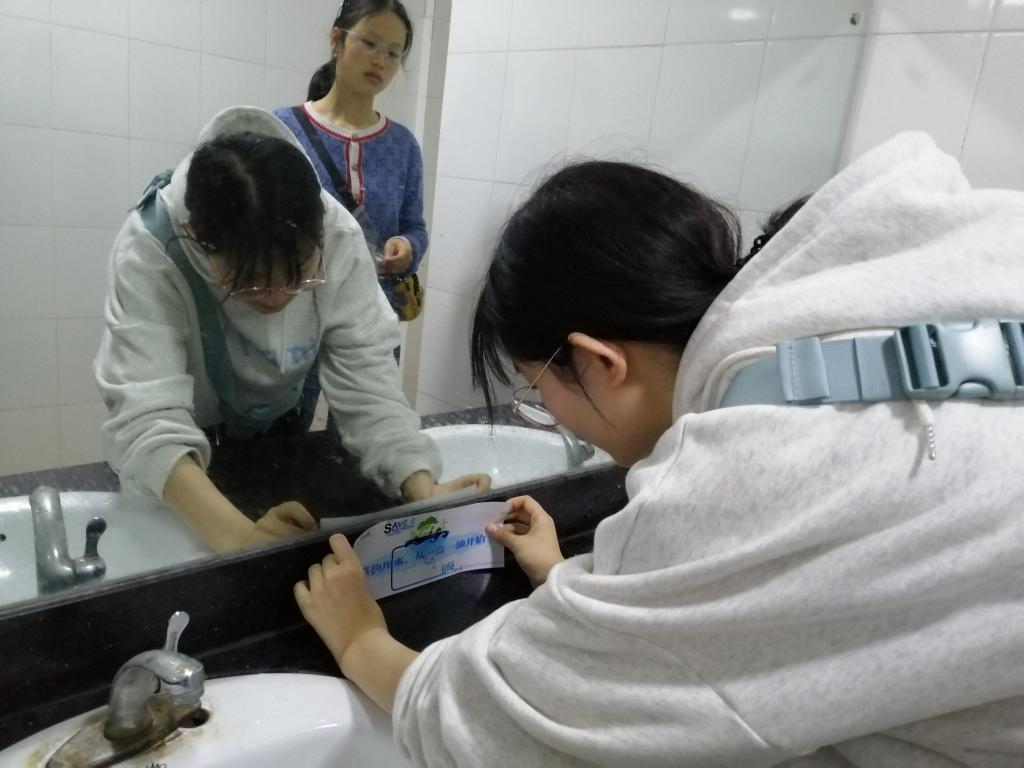 上午10时,在进行分组后,志愿者们分别前往云塘校区工科三号楼和综合教学楼楼内洗漱台前醒目位置张贴节水护水标语,希望通过简单明了的宣传标语倡导广大师生共同参与节约水资源的工作中,提高对节水型社会的知晓率与参与率。