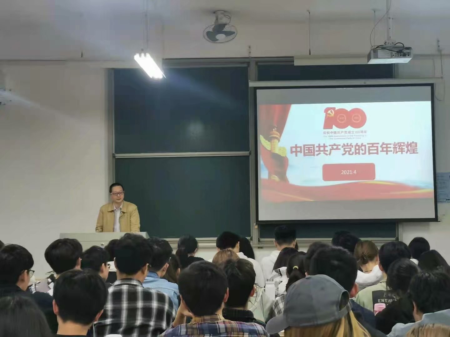 蔡老师从新民主主义革命时期的开天辟地,社会主义革命和建设时期的改天换地,改革开放伟大革命时期的翻天覆地,中国特色社会主义进入新时代的惊天动地四个阶段对中国共产党的百年辉煌历史进行了详细讲解。为同学们解答了中国道路能够成功的根本原因就是中国共产党的坚强领导。随后蔡老师为大家讲述了中国政党制度的主要优势所在,同学们深有感悟。
