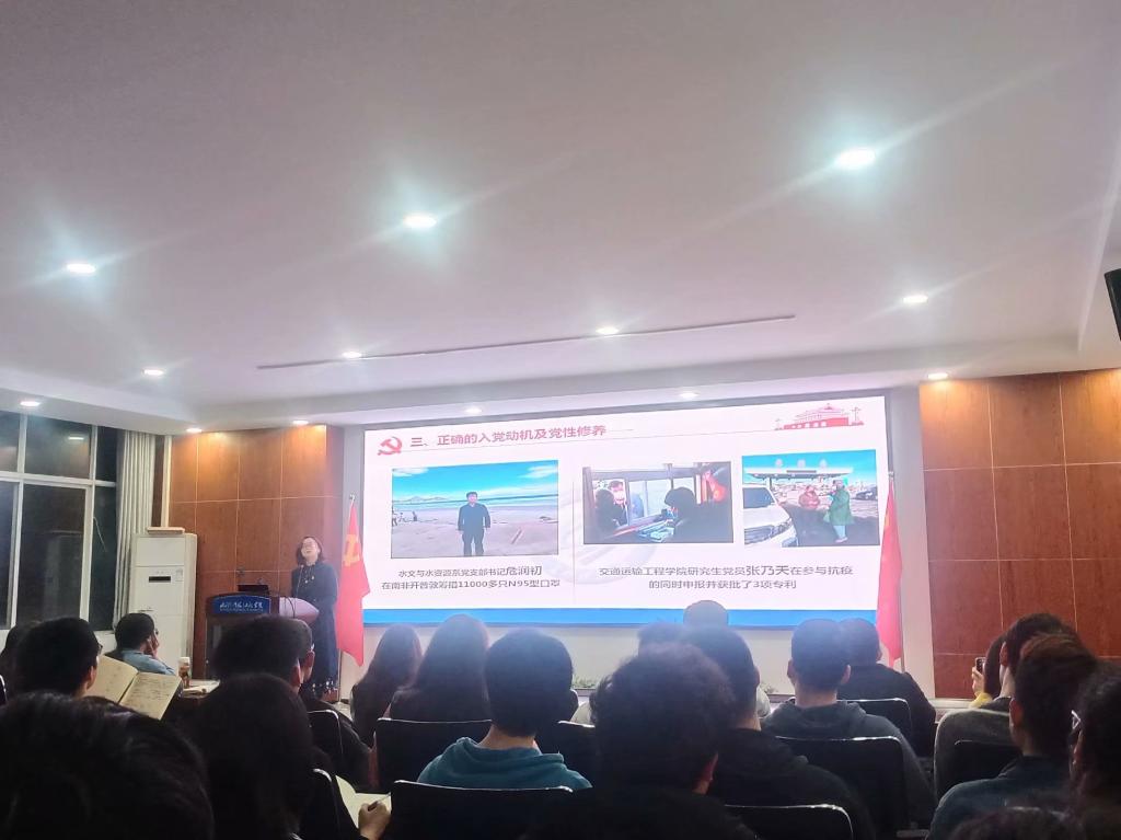 4月26日晚,水利工程学院分党校在工三B319举行了第13期发展对象培训班第一课,由设计艺术学院党委副书记文丽丽老师主讲《端正入党动机,加强党性修养》。