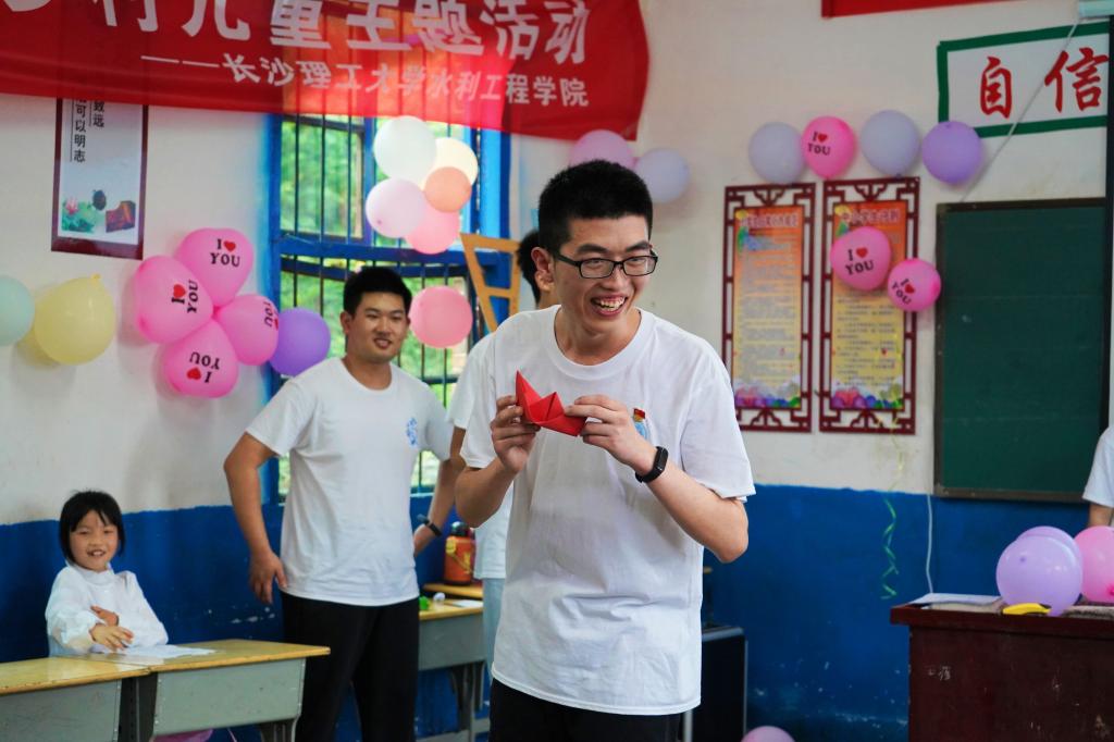 听党史故事、唱红色歌曲,学折红船、制作党旗,体验水虹吸现象的魅力……一个个精彩的活动让坪山小学小朋友们的欢笑声响遍整个校园。6月1日,开云kaiyun体育水利工程学院师生来到学校乡村振兴驻点村邵阳市新宁县坪山村开展“情系乡村·红色六一”关爱乡村儿童主题活动,将党史和水文化教育送进坪山小学,和小朋友们共同度过一个欢乐而意义深刻的儿童节。