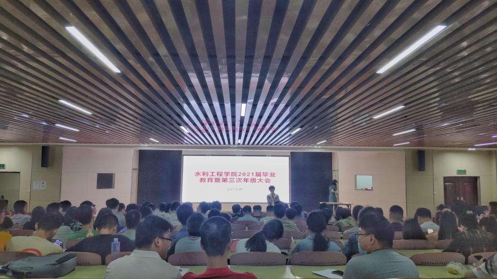 5月26日,水利工程学院在工科三号楼A区307召开2021届毕业生毕业教育大会暨年级大会。参加本次会议的院党委副书记银波、院心理辅导员刘灿、就业专干肖苹宁,会议由年级辅导员杜丘主持。