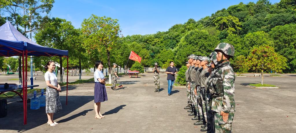 喻玲娜代表学院表达了对参训学生的关心,详细了解他们的生活、学习、训练等情况,高度赞扬了他们敢于担当、艰苦奋斗、锐意进取的精神以及在训练中所展现出的坚韧不拔的优良品质,希望他们能好好珍惜训练时光,在接下来的训练过程中以更加严肃认真的态度,最饱满的热情展现出我院学子吃苦耐劳、勇往直前的精神!喻书记的讲话极大地鼓舞了参训学生,大家纷纷表示一定会严格训练,积极准备,争取圆满完成训练任务。